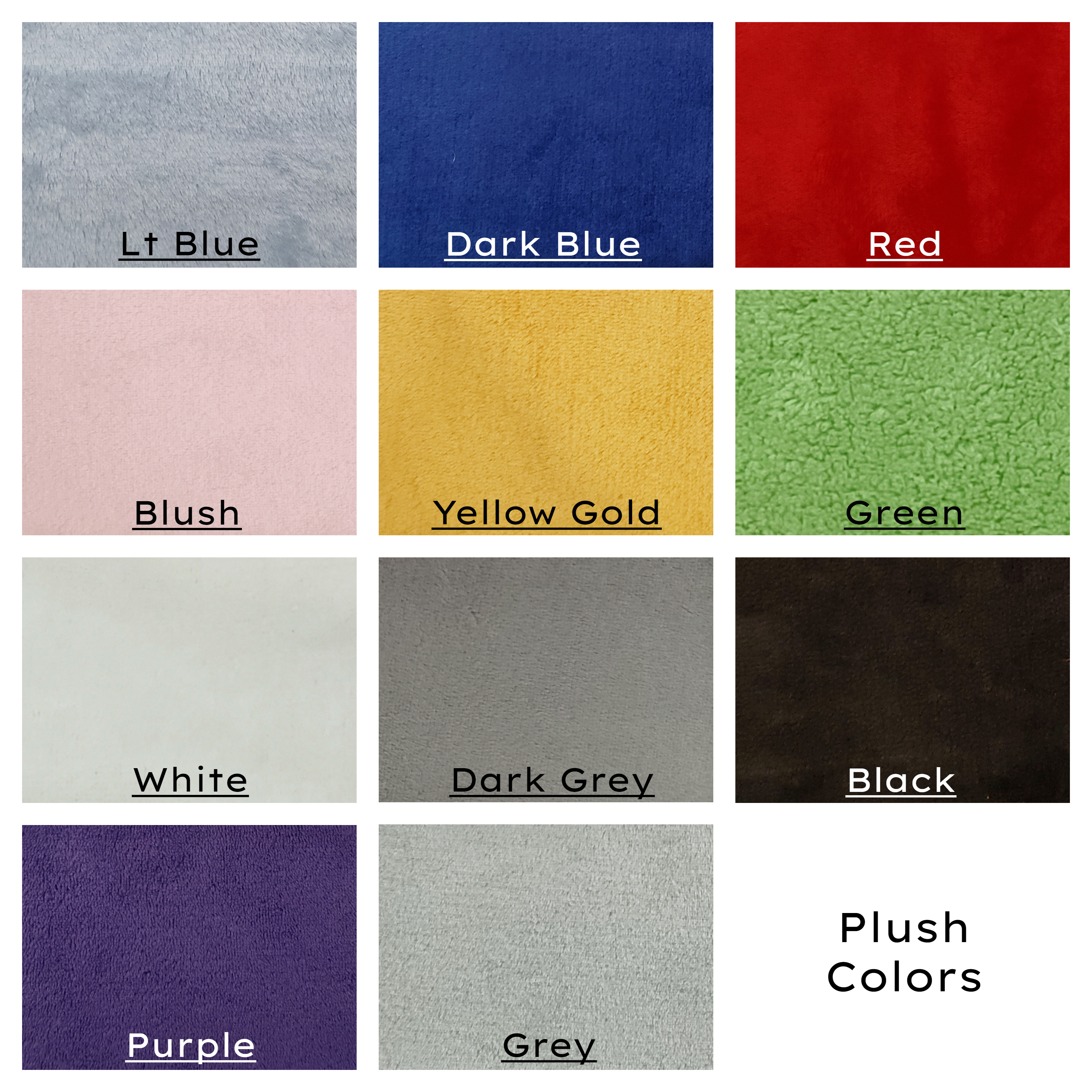 - Writing will go on the solid back side (not the printed minky side) unless you write in the Extra Info section to have it on the Printed Minky/front side.